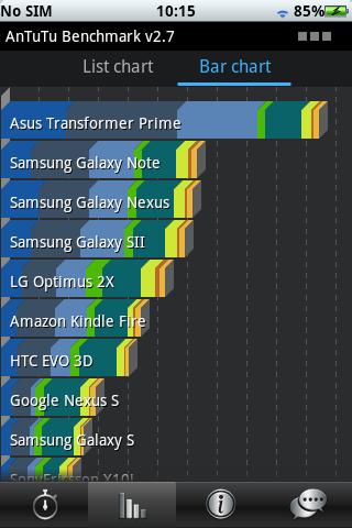 Und schließlich wird das Ganze noch in einer Art Diagramm aufgelistet, also, alle ermittelten Werte werden zusammengefasst und man sieht in einer Art „Ranking“ wie das eigene Smartphone abschneidet.