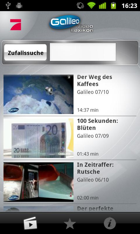 Die kleine Bildungs-App für zwischendurch. Über 5.000 Videos finden sich im Archiv. Und mittels Audio-Mining werden außerdem neue Galileo-Folgen regelmäßig für das Videolexikon indiziert.