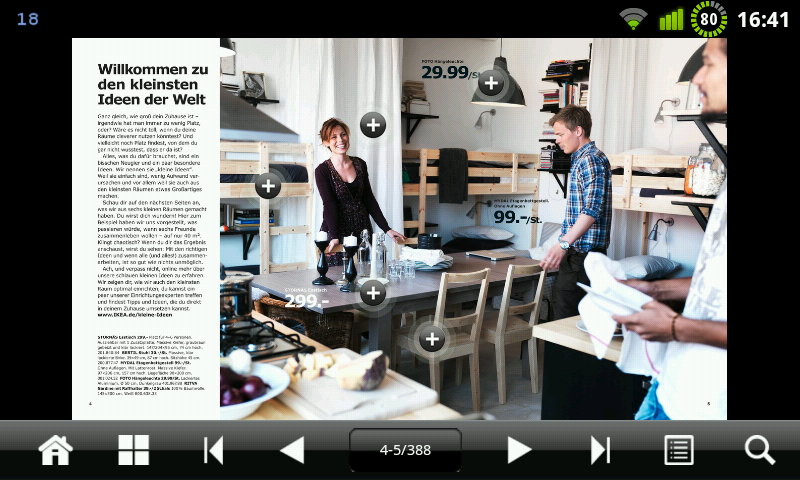 Hat man sich die App nun einmal heruntergeladen lassen sich im Katalog Lesezeichen setzen, was es möglich macht, die ausgewählten Produkte zum späteren Zeitpunkt wiederzufinden. Ebenfalls möglich: Seiten teilen via Facebook und Twitter.