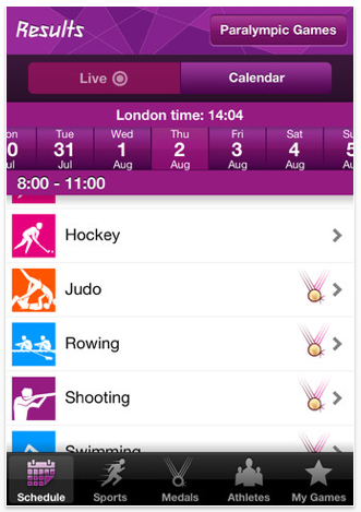Auch die Apfelnutzer können an der derzeitigen Olympiade in London teilhaben. Zwar nicht in Form eines Spiels, sondern in Form einer App, die die Ergebnisse zeigt. Welches Land hat bereits wieviele Medallien geholt? Wann findet der nächste Wettkampf in welcher Disziplin statt? All das und noch vieles mehr gibt’s mit dieser App.