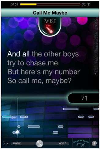 Genau das gibt’s jetzt auch für den Apfel. Einziger Wehrmutstropfen: die einzelnen Songs müssen gekauft werden. Die App an sich und das Karaoke spielen bzw. singen ist bei jedem Aufruf kostenlos. Da man ein entsprechendes komplettes Musikstück hört ist es ähnlich wie bei einem Musikdownload, der meist auch nicht gratis ist. Aber dennoch kann ich mir gut vorstellen, dass diese App gut auf Partys ankommt.