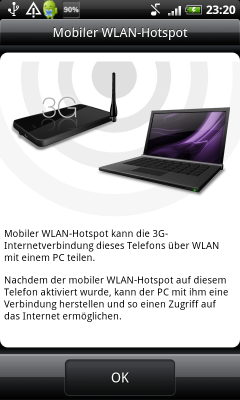 Neu ist außerdem die „Hotspot“ Funktion. Damit kann man sein Handy als Hotspot nutzen um beispielsweise vom Laptop aus übers Handy als Modem/Hotspot ins Internet zu gehen. Dies ist bisher aber nur für O2 Nutzer sinnvoll. O2 interessiert es vorerst nicht sonderlich, wie das MB Volumen verbraucht wird. Vodafone dagegen schon. Hier wird eine Gebühr von ca. 10€ fällig, wenn man sein Handy als Hotspot nutzen möchte.