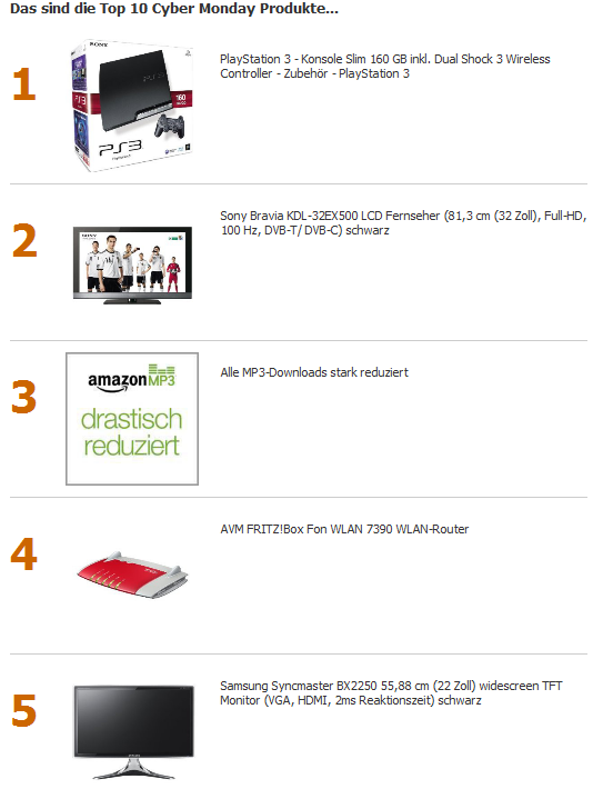Alles in Allem eigentlich ne gute Aktion, aber vielleicht sollte man von allen Artikeln mal mehr als 2 vorrätig haben. So macht Cybermonday keinen Spaß!!