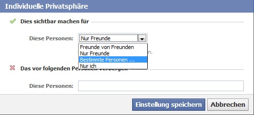 Und später könnt ihr dann im Spiel vor dem Veröffentlichen auf „benutzerdefiniert“ und „bestimmte Personen“ klicken. Hier tippt ihr in der nächsten Zeile den Namen der eben erstellten Liste ein. Klickt sie an und geht nun auf „Einstellungen speichern“ – fertig. Schon könnt ihr eure Anfrage veröffentlichen, ohne das Unbefugte sie sehen.