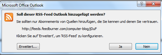 Mit Outlook 2007 lassen sich auch die RSS Feeds aus den Internetseien auslesen. RSS soll hauptsächlich dazu dienen, die neuesten Artikel bzw. Informationen auf einer Webseite abzurufen. So das man eben nicht erst auf die entsprechende Seite gehen muss, um die neuesten Nachrichten zu lesen.