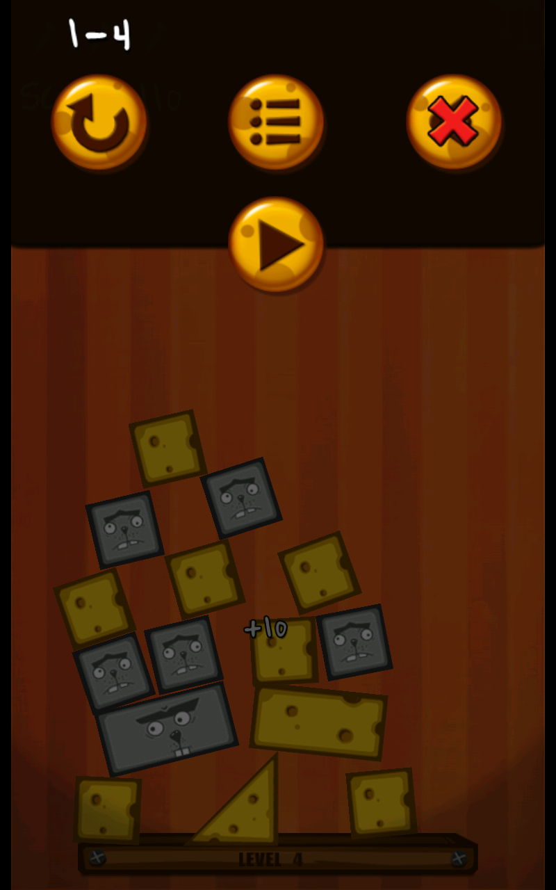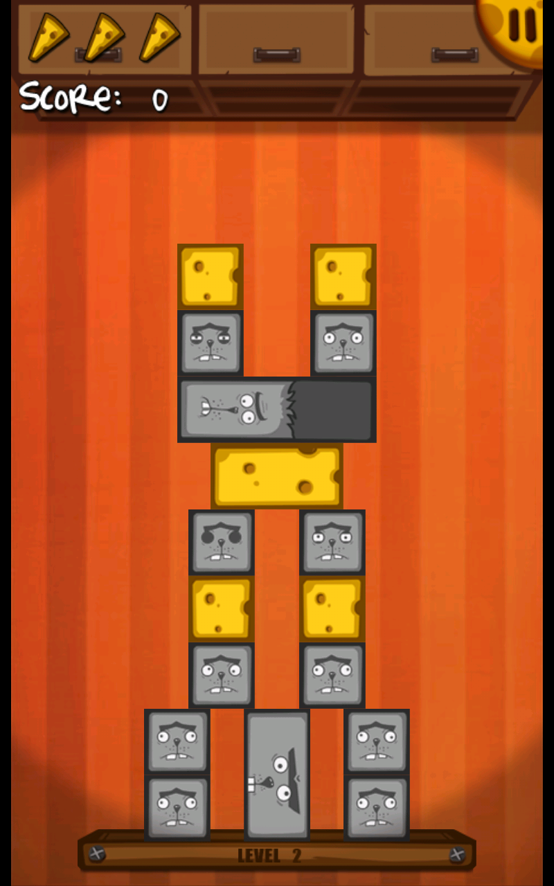 Im Spiel „Käseturm“ geht ebenfalls darum, Punkte zu machen und nebenbei auch Sterne in Form von „Käseecken“ zu sammeln. Ziel des Spiels ist es, den Mäusen soviel Käse wie möglich zu servieren. Dafür müssen die grauen Steine weggeklickt werden und die Käsestücken sollten nicht vom Rand fallen.