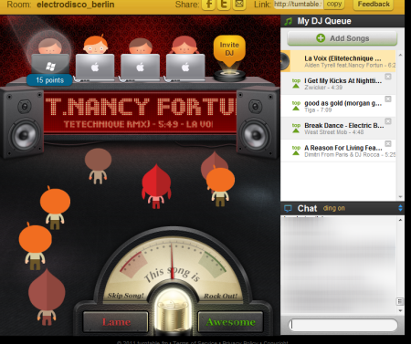 Ein Avatar wird entsprechend den „Fähigkeiten“ des DJs angepasst und auch ein Chat steht zur Verfügung.