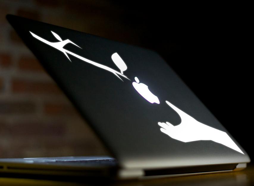 Einen leuchtenden Apfel kann ja jeder auf seinem MacBook haben, dachte sich Victor van Doorn. Also beschloss er, sein MacBook ein wenig zu personalisieren. Dies gelang ihm zunächst in sofern, das er erst mal die Wlanantenne an seinem MacBook zerstörte. Nichts desto trotz blieb er am Ball und designt nun auf Kundenwunsch individuelle Apfel-„Deckel“.